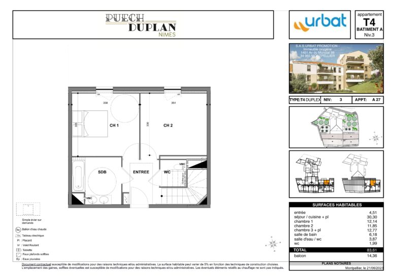 La romanité à vos pieds… grande classe ! C’est ce que nous vous offrons au Nord de Nîmes, avec le calme et les hauteurs du Mont Duplan. Là, vous avez le centre-ville tout à côté, sans son lot d’agitation, juste les commerces et les écoles à proximité. Nous le savons, vous avez tout d’un propriétaire nîmois. Avec Puech Duplan il est temps de sauter le pas. C’est une petite résidence de 49 appartements contemporaine, avec des toits en tuiles, parfaitement intégrée dans son environnement de maisons de ville. Elle possède 2 jardins intérieurs plantés de magnolias et d’oliviers. Un luxe en pleine ville !