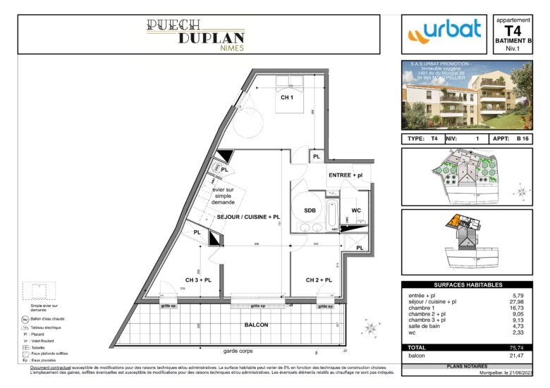 Votre chez vous est un studio ou un appartement de 2 à 4 pièces. Vous adorez ses espaces ouverts, sa luminosité naturelle, ses petits trucs en plus qui ajoutent à votre confort : sèche-serviette dans la salle de bain, baies coulissantes ouvertes sur la terrasse et ces vues dominantes sur Nîmes… avouez-le, vous êtes chanceux !