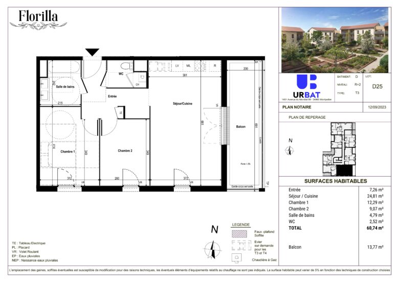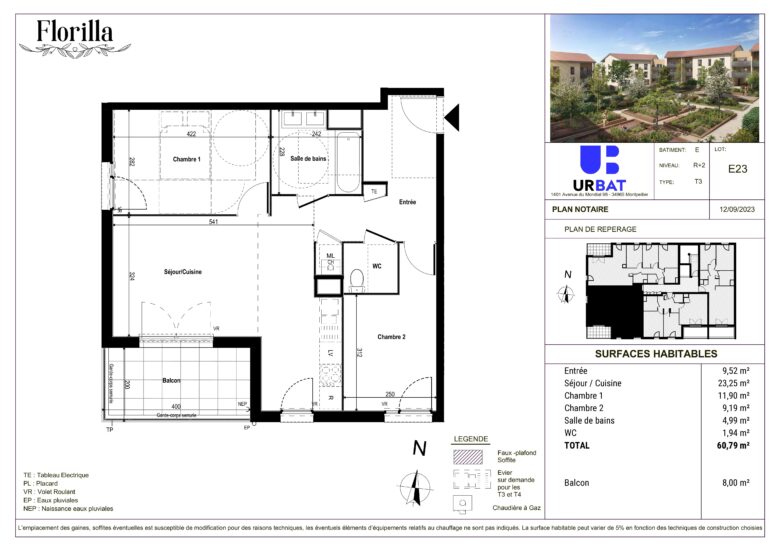 Lot E23 T3 - 61m² 279 500 € 20.00% 279 500 € 20.00%